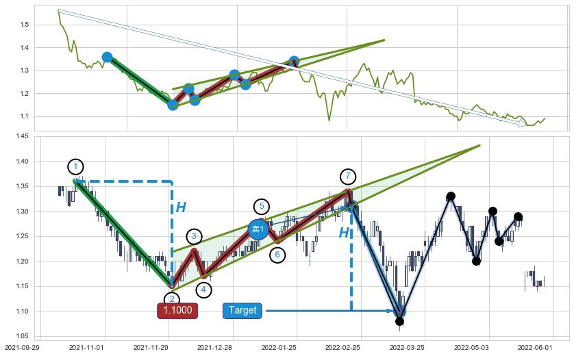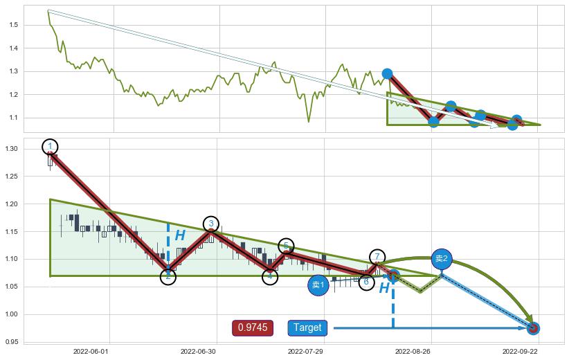 ➢ 2022-04-21到达第❶价格目标位置1.2300