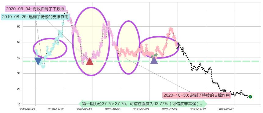 ♞ 第一阻力位37.75价格为37.75,其通过量化计算出的可信任强度为93.77%(可信度非常强)。