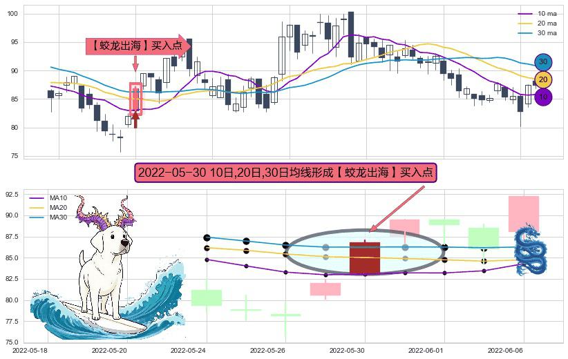 ⚀ 2022-05-30日显现 10日-20日-30日均线 【蛟龙出海】买入点 看多信号,后市看涨,买入