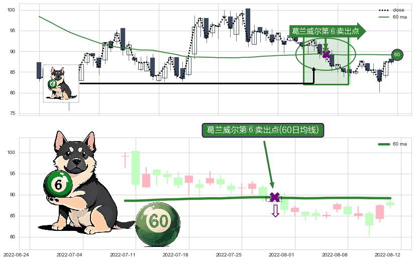⚀ 2022-07-28-日显现 葛兰威尔均线 60日均线 第⑥卖出点 走势反转见顶信号,后市看跌,卖出信号