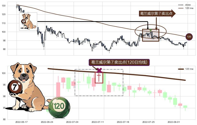 ⚀ 2022-07-08-日显现 葛兰威尔均线 120日均线 第⑦卖出点 下降趋势的中继信号,后市看跌,卖出信号