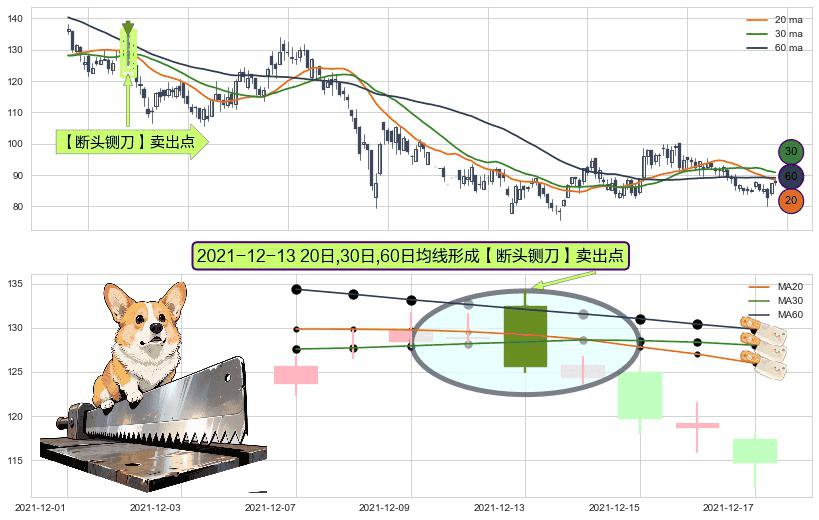⚀ 2021-12-13日显现 20日-30日-60日均线 【断头铡刀】卖出点 看空信号,后市看跌,卖出