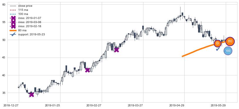 ⚃ 在破位点附近ma走势已有下垂迹象,稍后的走势中ma下降趋势明显,信号【可信度高】