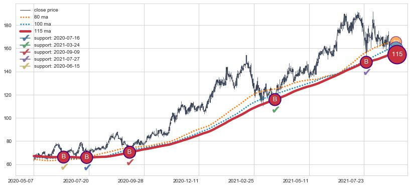 ⚁ MA60和MA90走势平行,且始终保持在短距离内,MA120始终在短中期均线上方,与短中期均线保持一定的距离,微微下行