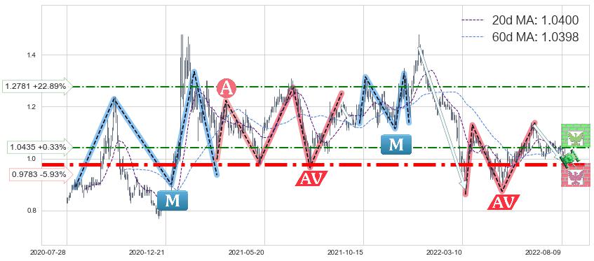 ♘ 支撑价格位0.9783,可信任强度94.07%,距离最后交易2022-08-12形成的收盘价格1.0400相差 -5.93%