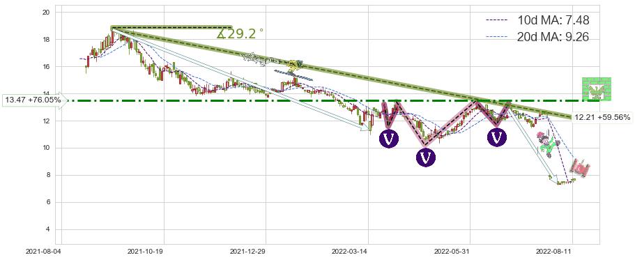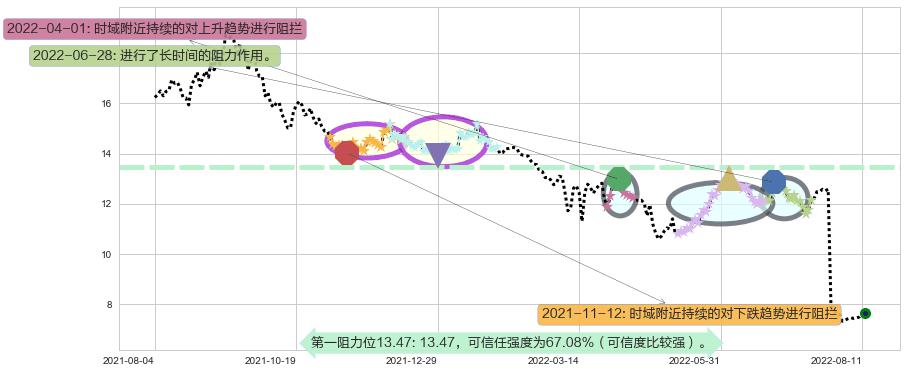 ♘ 阻力价格位13.47,可信任强度67.08%,距离最后交易2022-08-12形成的收盘价格7.65相差 +76.05%