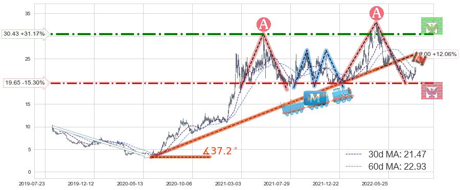 ♘ 阻力价格位30.43,可信任强度80.42%,距离最后交易2022-08-12形成的收盘价格23.20相差 +31.17%