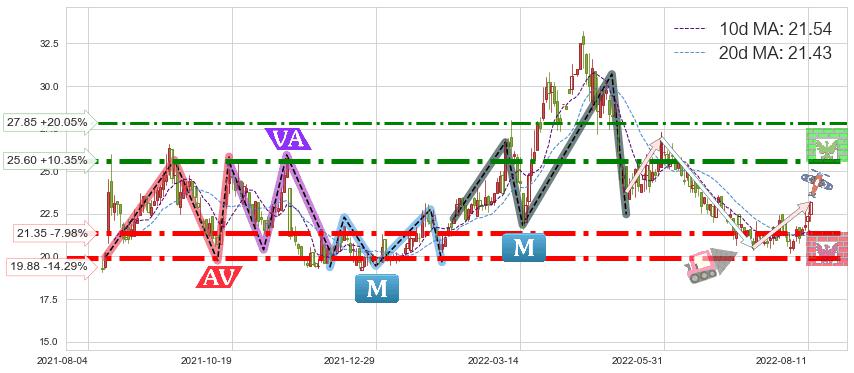 ♘ 阻力价格位25.60,可信任强度88.39%,距离最后交易2022-08-12形成的收盘价格23.20相差 +10.35%
