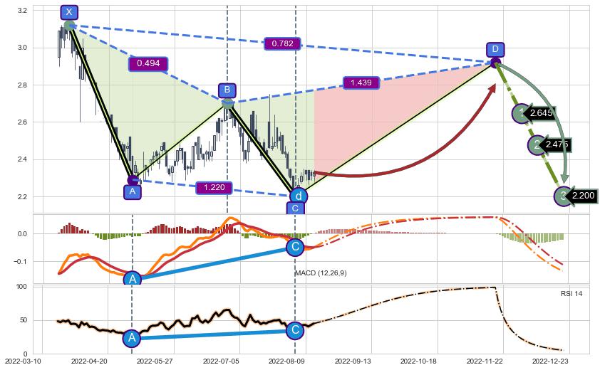 ➣ D点拟合预测价格2.919,距离最后交易收盘价格2.330相差 +25.30%