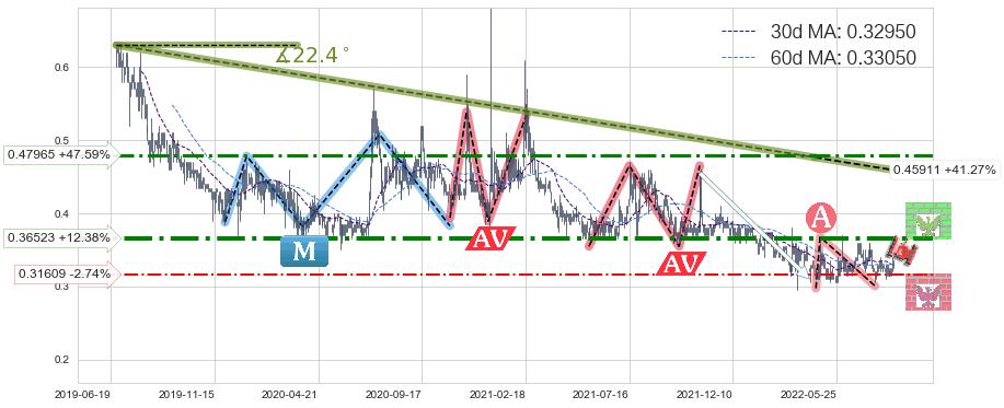 ♘ 阻力价格位0.36523,可信任强度82.83%,距离最后交易2022-08-12形成的收盘价格0.32500相差 +12.38%
