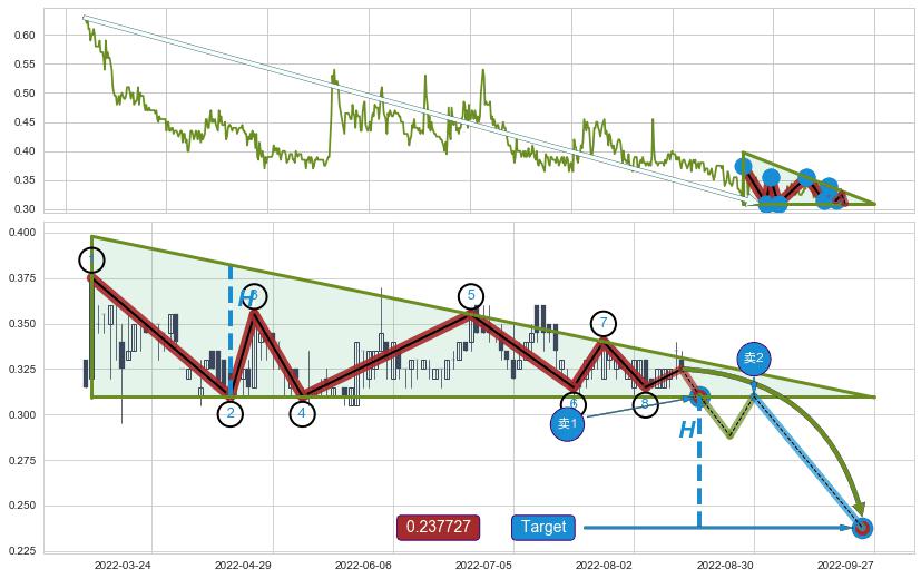 ➢ 【仅预测突破】最后价格:0.32500与预测突破价格:0.31000→【空间临近】后续最小【整理】第一目标价格→(2022-09-23: 0.237727 )