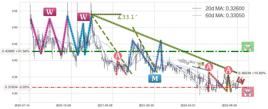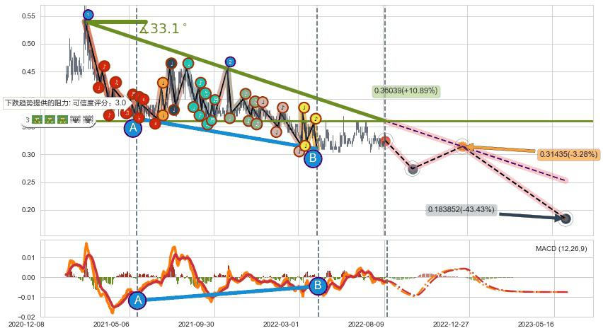 ➣ 预测:2022-12-19,【试探阻力】稳定目前下跌趋势的前提下,预测价格:0.31435