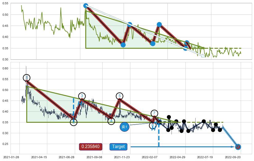 ➢ 【卖1】: 激进型 卖点→(2022-02-09: 0.35000 )形成突破下降三角形整理【整理】形态