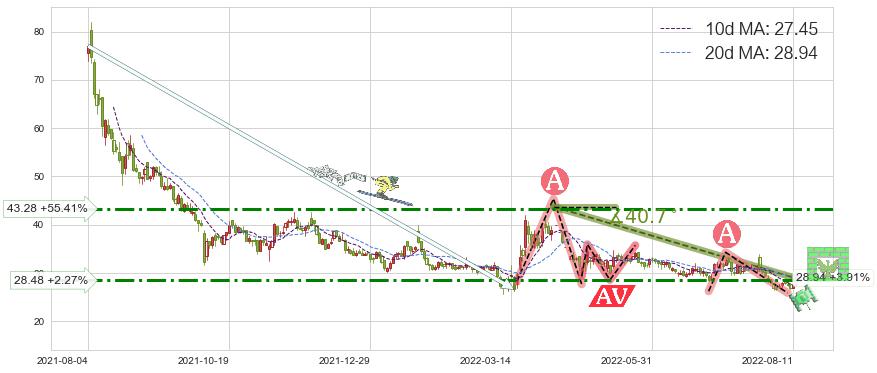 ♘ 阻力价格位28.48,可信任强度61.43%,距离最后交易2022-08-12形成的收盘价格27.85相差 +2.27%