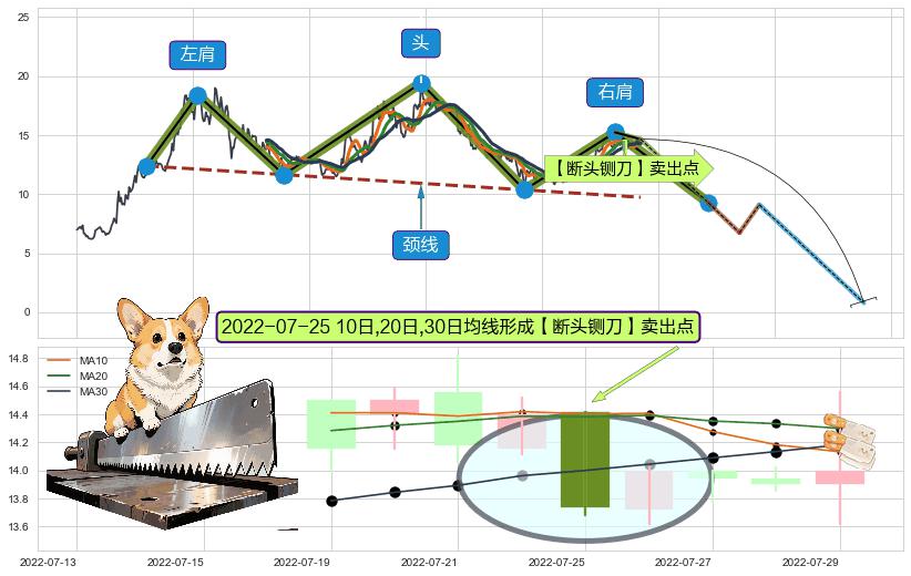 ➢ 【卖0】上涨趋势线在→(2022-01-04: 14.92 )被突破,反转趋势形成