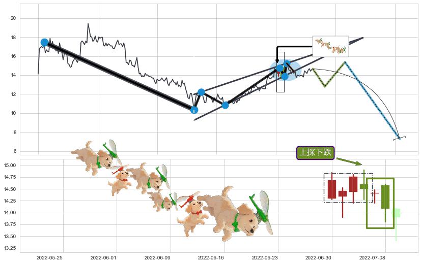 ➢ 【卖1】: 激进型 卖点→(2022-07-21: 14.39 )形成突破升🚩楔型【整理】形态