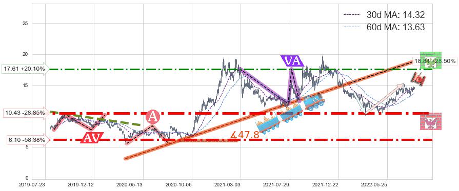 ♘ 阻力价格位17.61,可信任强度57.93%,距离最后交易2022-08-12形成的收盘价格14.66相差 +20.10%