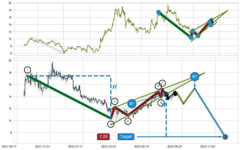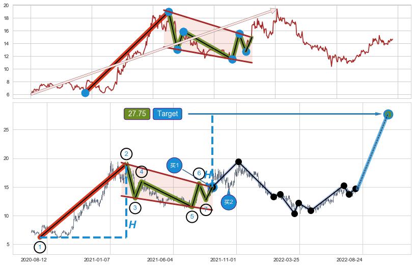 ➣ 最小中继整理涨幅→𝐇: 12.82 (𝐇旗杆的长度:旗杆起点→顶点)