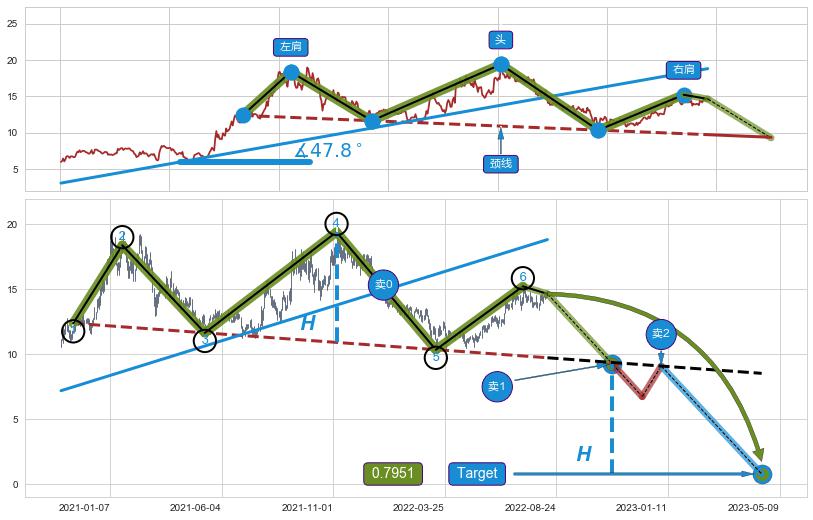 ➢ 颈线向下倾斜角度【适中】,【右肩】低于【左肩】, 反转下跌可信度以及持续性【中高偏上】