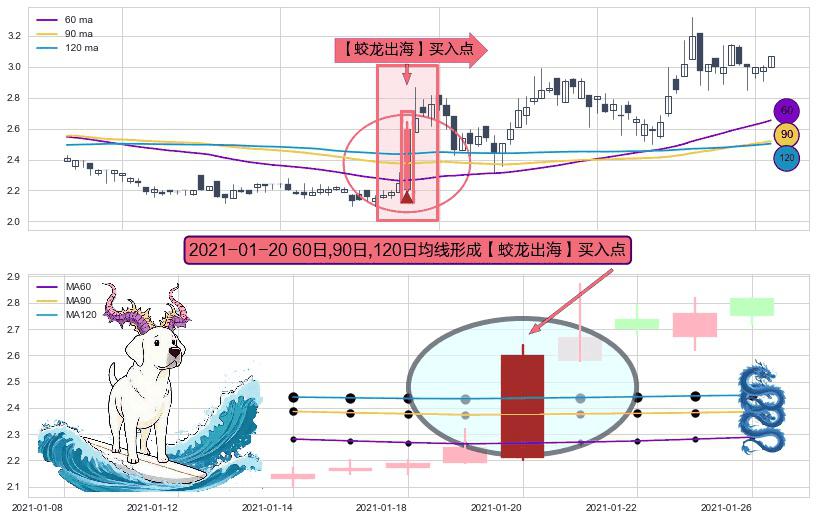 形态多维评估: ⚀ 2021-01-20日显现 60日-90日-120日均线 【蛟龙出海】买入点 看多信号,后市看涨,买入