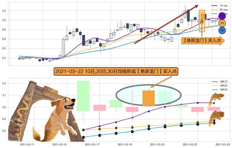 形态多维评估: ⚀ 2021-03-22日显现 10日-20日-30日均线 【鱼跃龙门】买入点 看多信号,后市看涨,买入