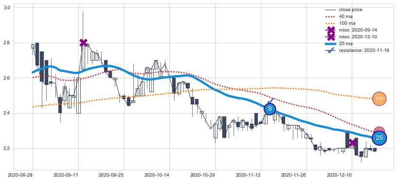 下跌趋势2020-08-28-2020-12-17,均线25确认关键阻力1处
