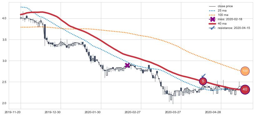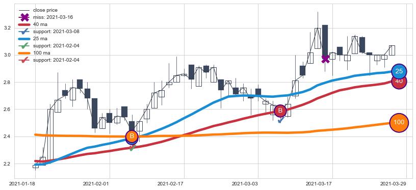 上涨趋势2021-01-18-2021-03-29,均线40, 25, 100确认关键支撑2处