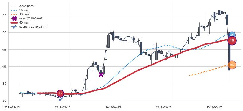 上涨趋势2019-02-15-2019-06-20,均线40确认关键支撑1处