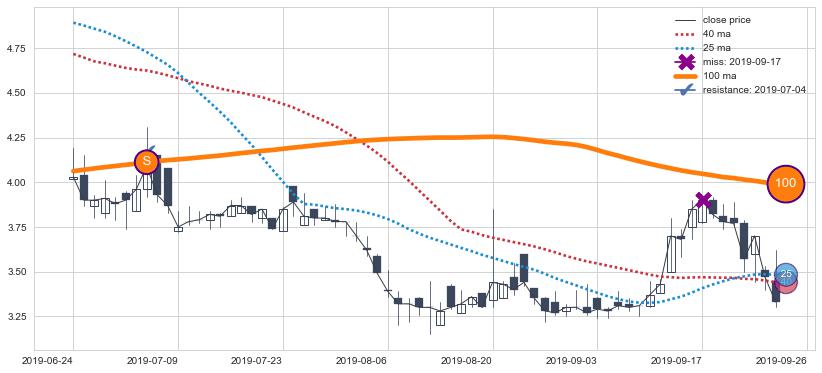 下跌趋势2019-06-24-2019-09-26,均线100确认关键阻力1处