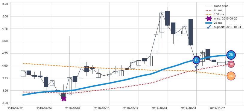 上涨趋势2019-09-17-2019-11-08,均线25确认关键支撑1处
