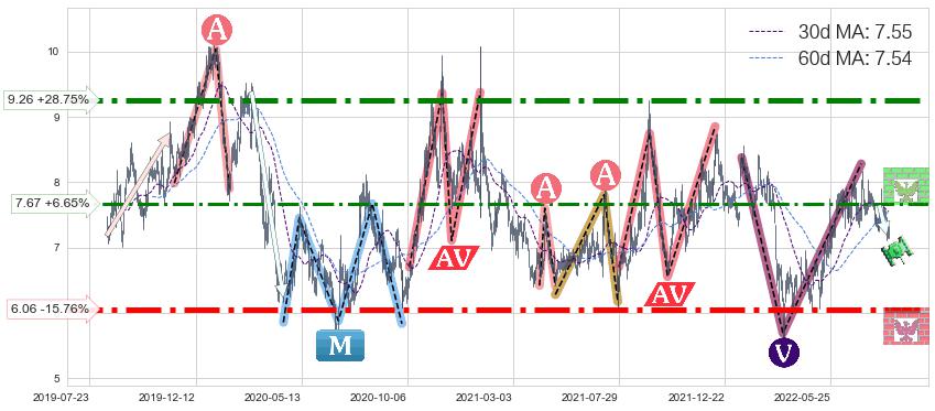 ♞ 30日均线:7.55,60日均线:7.54→ 快线>慢线