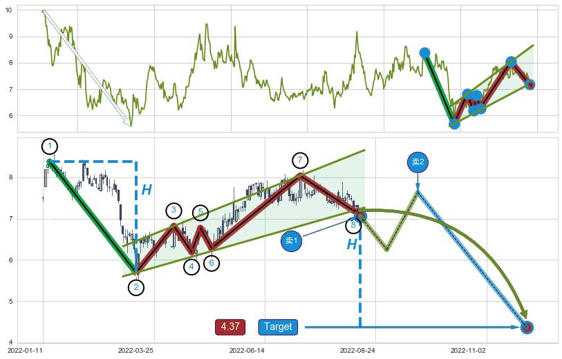 ➢ 2022-05-25到达第❶价格目标位置7.21