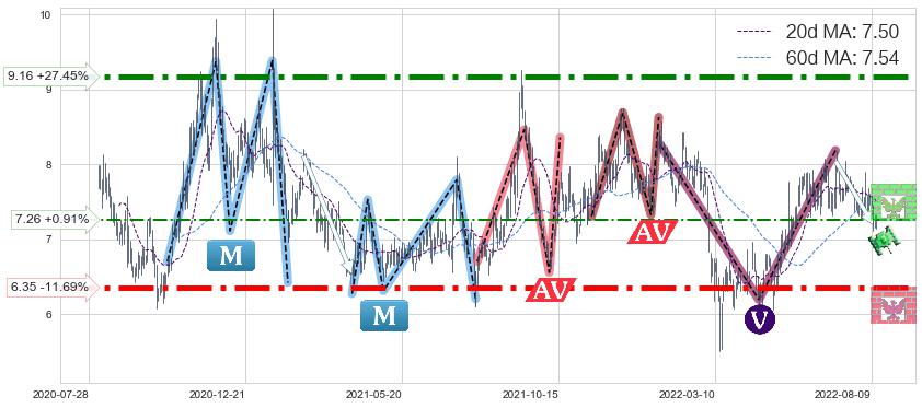 ➣ AI预测: 假定反转如期而至,第❷价格目标位置(2022-09-13, 7.72)