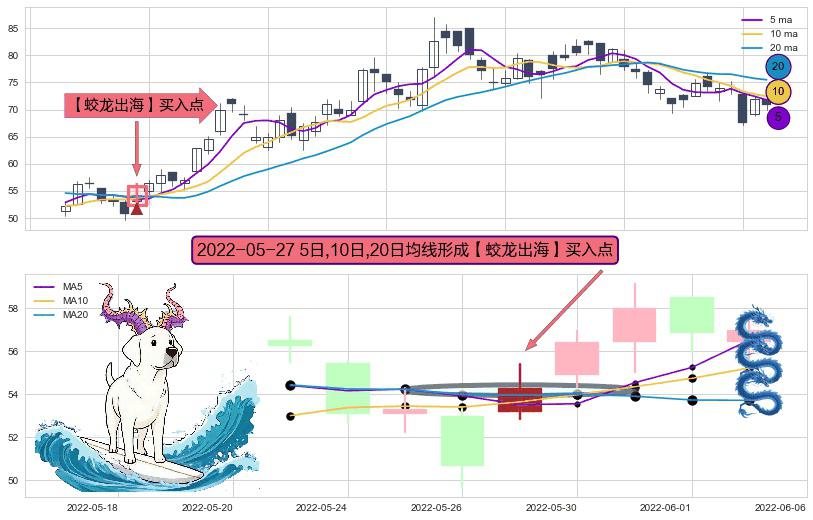 ⚀ 2022-05-27日显现 5日-10日-20日均线 【蛟龙出海】买入点 看多信号,后市看涨,买入