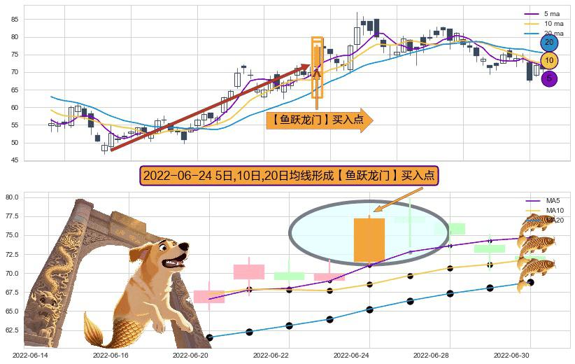 ⚀ 2022-06-24日显现 5日-10日-20日均线 【鱼跃龙门】买入点 看多信号,后市看涨,买入