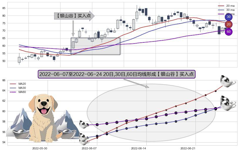 ⚀ 2022-06-08-日至2022-06-24-日显现 20日-30日-60日均线 【银山谷】买入点 看多信号,后市看涨,买入
