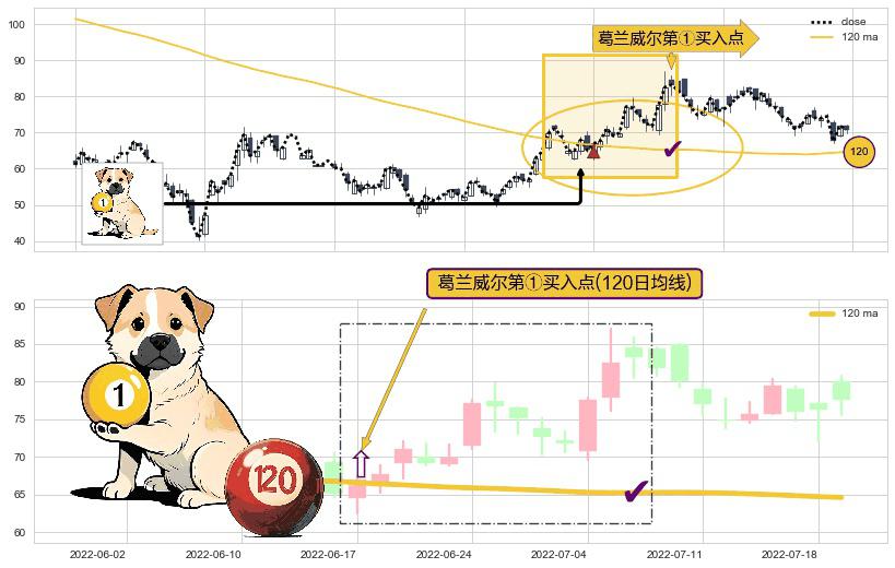 ⚀ 2022-06-17-日显现 葛兰威尔均线 120日均线 第买①入点 走势反转见底信号,后市看涨,买进信号
