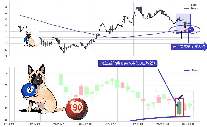 ⚀ 2022-08-10-日显现 葛兰威尔均线 90日均线 第②买入点 上升趋势的中继信号,后市看涨,买进信号