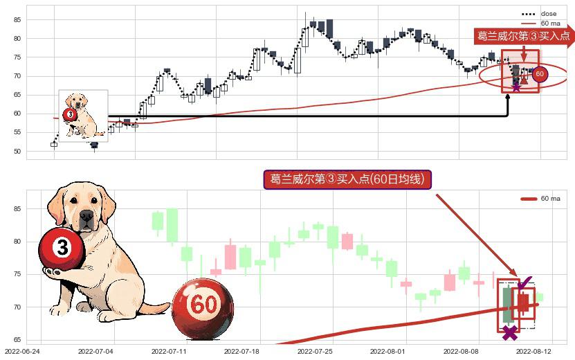 ⚀ 2022-08-11-日显现 葛兰威尔均线 60日均线 第③买入点 上升趋势的中继信号,后市看涨,买进信号
