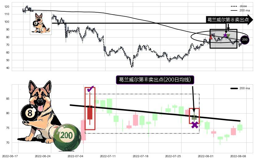 ⚀ 2022-07-27-日显现 葛兰威尔均线 200日均线 第⑧卖出点 下降趋势的中继信号,后市看跌,卖出信号