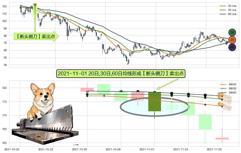 ⚀ 2021-11-01日显现 20日-30日-60日均线 【断头铡刀】卖出点 看空信号,后市看跌,卖出