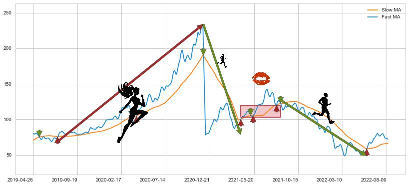 2021-08-16至2022-06-06 慢线与快线呈空头排列, 慢线与快线接触少,无缠绕