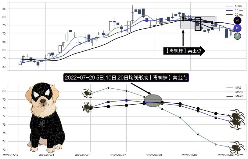 ⚀ 2022-07-29日显现 5日-10日-20日均线 【毒蜘蛛】卖出点 看空信号,后市看跌,卖出