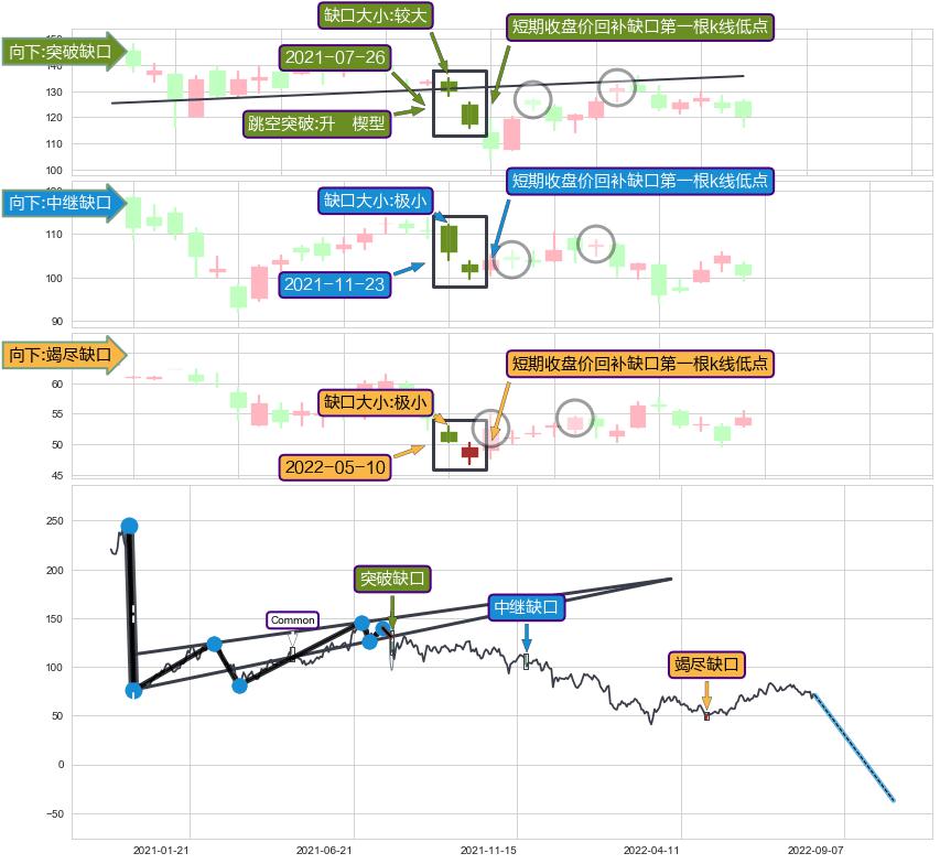 ➢ 2022-05-10形成:向下跳空【竭尽】缺口