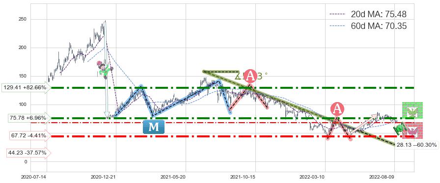 ♘ 阻力价格位75.78,可信任强度83.81%,距离最后交易2022-08-12形成的收盘价格70.85相差 +6.96%