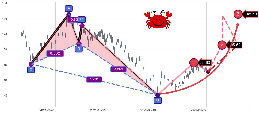 ➣ 已完成【螃蟹】形态起点X: 2021-03-08, 终点D: 2022-03-15, 共253交易日