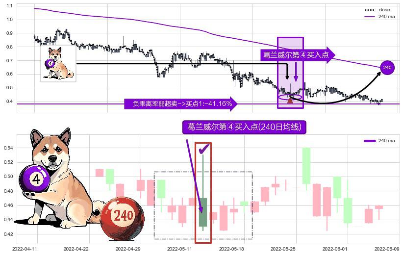 ⚀ 2022-05-12-日显现 葛兰威尔均线 240日均线 第④买入点 下降趋势均值回复的短线反弹信号,后市看涨,买进信号