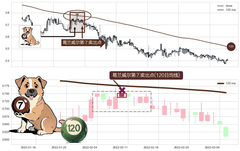 ⚀ 2022-02-10-日显现 葛兰威尔均线 120日均线 第⑦卖出点 下降趋势的中继信号,后市看跌,卖出信号
