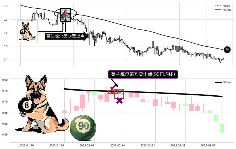 ⚀ 2022-02-11-日显现 葛兰威尔均线 90日均线 第⑧卖出点 下降趋势的中继信号,后市看跌,卖出信号