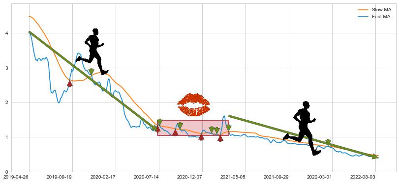 2021-03-08至2022-08-12 慢线与快线呈空头排列, 慢线与快线接触少,无缠绕